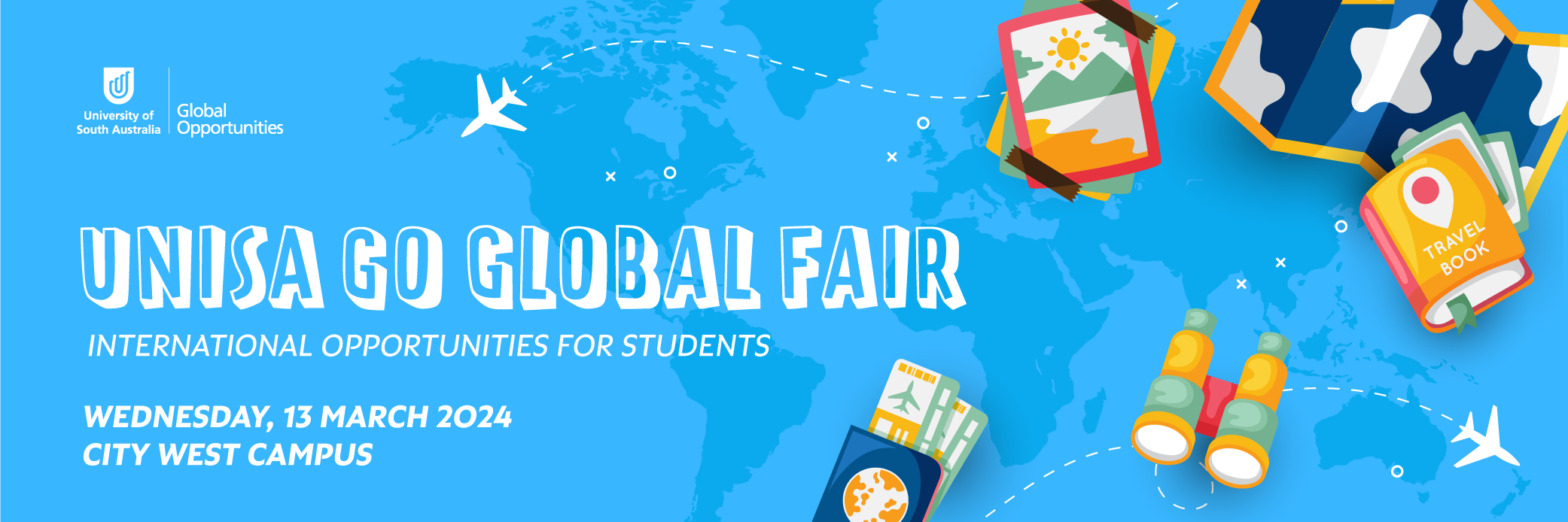 Want to take your degree overseas? Come to the UniSA GO Global Fair to hear from the UniSA Global Opportunities team about available programs, meet UniSA exchange partners from around the world, learn about scholarship opportunities and support services for students interested in studying overseas.
